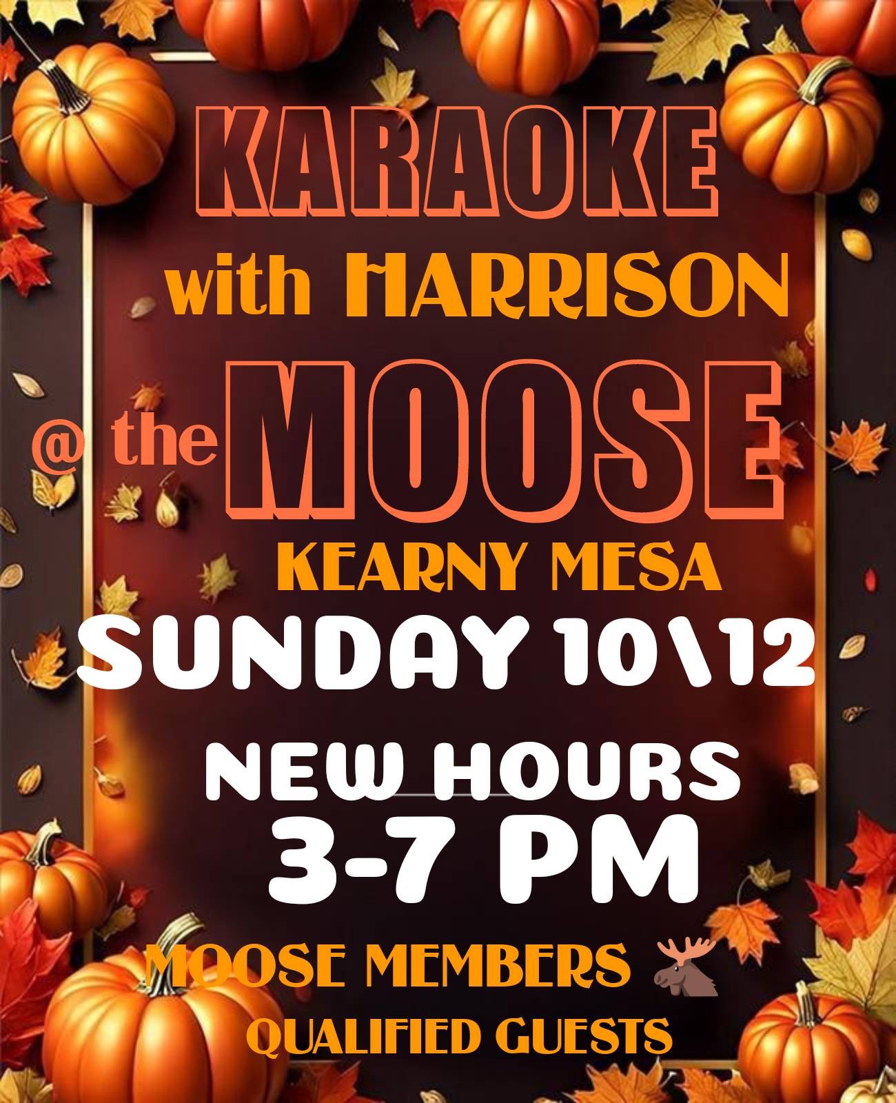 TRUNK-OR-TREAT! Look for the vehicle sign-up sheet in the Social Quarters. Karaoke with Patrick Hill 3pm - close.