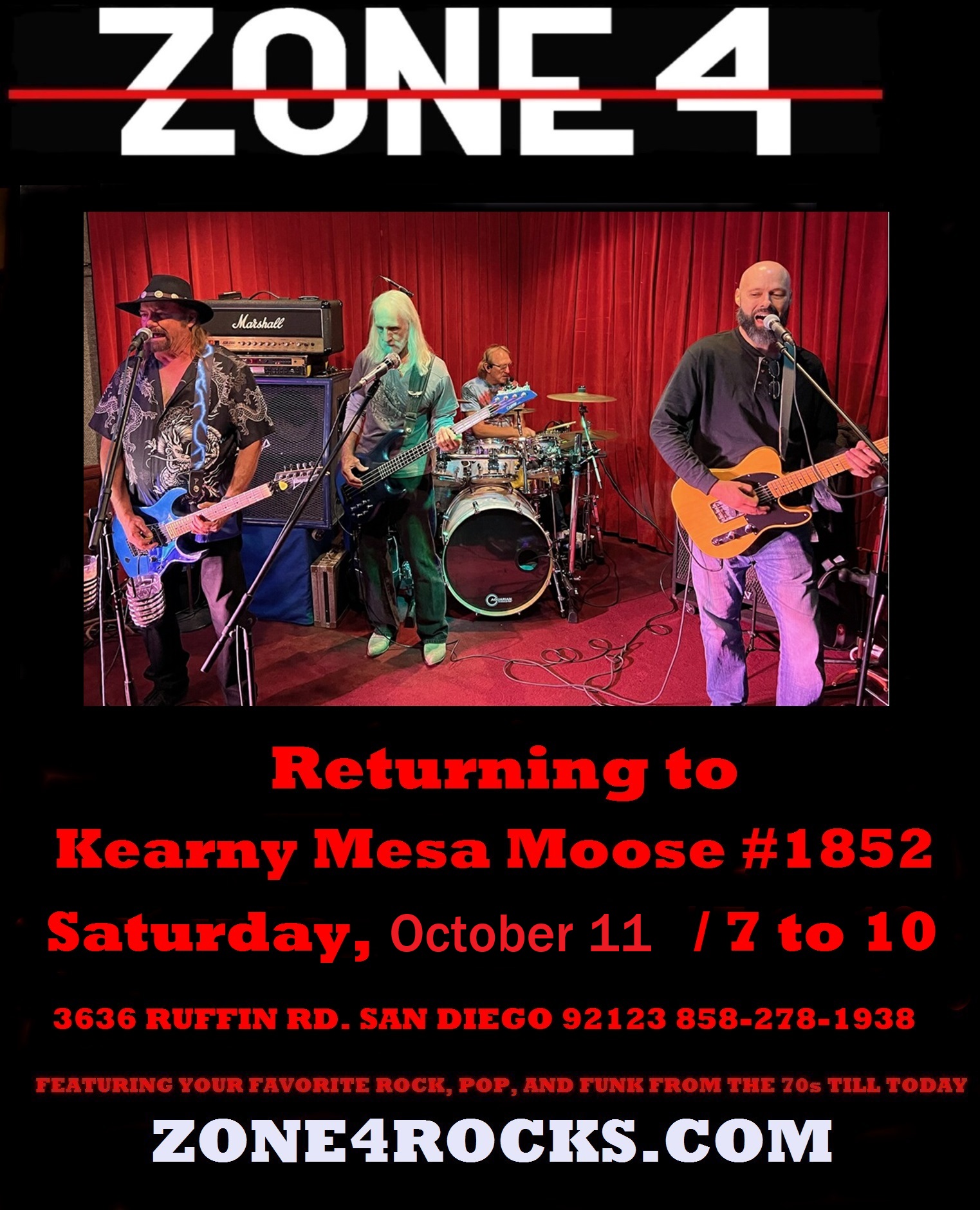 Social Quarters open at 4pm. Catch the decisive game 5 of the NLDS - Chicago vs Milwaukee at 5:08pm, as well as plenty of college football on our TVs. Happy Birthday to our members celebrating a birthday in October! Bring something to share for a Potluck dinner, and Zone 4 will provide the entertainment. The Potluck will begin at 6pm, and Zone 4 will play 7 to 10pm.